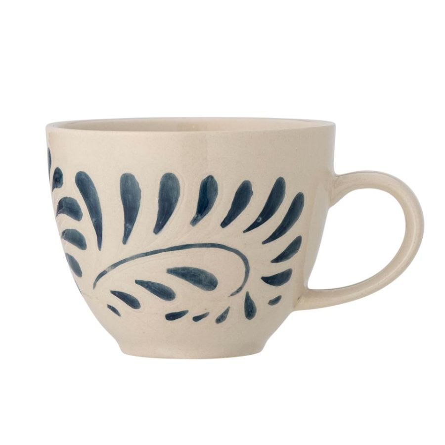 Heikki Koppen fra Bloomingville er den perfekte tilføjelse til samlingen af krus og kopper. Den smukke lyse glasur kombineret med et præget blåt mønster giver koppen et unikt og indbydende udtryk, der gør hver kaffe- eller te-stund lidt mere speciel. Mix Heikki Koppen med andre designs eller hold stilen ren med flere af samme slags. På grund af det håndlavede design og glasurens karakter kan der forekomme små farvevariationer.